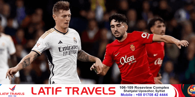 স্পোর্টস ডেস্কঃ অ্যান্থনি রুডিগারের গোলে জয়ে বছর শুরু রিয়াল মাদ্রিদের। গত রাতে মায়োর্কাকে হারিয়ে লিগ টেবিলের শীর্ষস্থান মজবুত করল কার্লো আনচেলত্তির দল। গোল শূন্যভাবে এগিয়ে চলা ম্যাচে শেষ পর্যন্ত রিয়ালের অপেক্ষার অবসান হয় ৭৮তম মিনিটে। লুকা মদরিচের কর্নার থেকে লাফিয়ে হেড করে ব্যবধান ১-০ বানিয়ে দেন রুডিগার। ২০২২ সালে রিয়ালে যোগ দেওয়ার পর লা লিগায় এটি তাঁর দ্বিতীয় গোল।