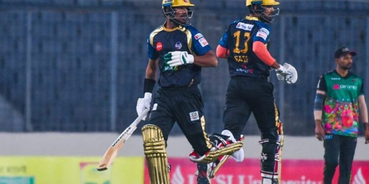 মিরপুরের হোম অব ক্রিকেটে টস হেরে ব্যাট করতে নেমে ইনিংসের শুরুতেই সাব্বির হোসেনকে হারায় ঢাকা। তবে দ্বিতীয় উইকেটে ৮০ রানের দারুণ এক জুটি গড়ে ভালো কিছুর ইঙ্গিত দেন নাঈম শেখ ও সাইফ হাসান। ১১তম ওভারের প্রথম বলে সাইফের বিদায়ে ভাঙে সেই জুটি। তবে বিদায়ের আগে ৩২ বলে ৬ বাউন্ডারি ও ১ ছক্কায় ৪১ রানের ইনিংস খেলে যান সাইফ।