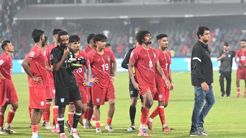নিজস্ব প্রতিবেদকঃ এশিয়ান কাপ বাছাইয়ের তৃতীয় রাউন্ডে শেষ মুহূর্তে হতাশার হার দেখেছে বাংলাদেশ। হংকং, চায়নার বিপক্ষে ম্যাচে দীর্ঘ সময় ৩-১ গোলে পিছিয়ে থাকার পর ৮৪ ও যোগ করা সময়ের নবম মিনিটে সমতায় ফেরে হ্যাভিয়ের ক্যাবরেরার দল। কিন্তু রেফারির শেষ বাঁশি বাজানোর আগমুহূর্তে হামজা চৌধুরী-সামিত সোম-শেখ মোরসালিনদের হতাশার সাগরে ডুবিয়ে হ্যাটট্রিক পূর্ণ করেন হংকংয়ের রাফায়েল মার্কিস। ফলে বাংলাদেশ হারল ৪-৩ ব্যবধানে।